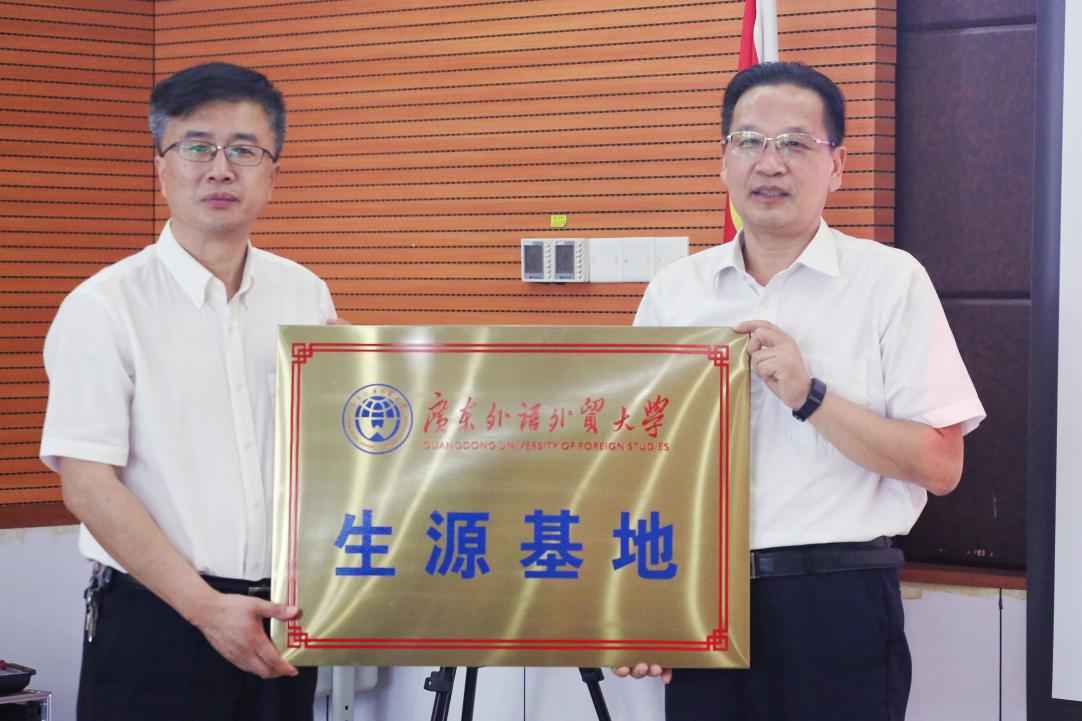 本网讯 4月20日下午,我校与深圳第二外国语学校共建生源基地。我校高级翻译学院党委书记李和民与深圳第二外国语学校副校长李方等出席授牌仪式并进行交流。