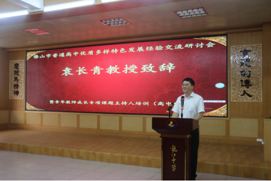 袁长青代表我校预祝研讨会取得圆满成功,并衷心感谢佛山市各中学多年来对广外招生工作的大力支持!希望进一步加强与龙江中学在教育教学等方面的交流与合作,也希望各中学继续积极向学生推介广外,指导更多优秀学生报考广外。