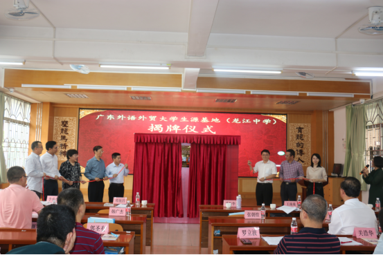 龙江中学是“佛山市特色高中创建学校”“广东省一级学校”。学校大力创建小语种特色学校,除英语课程外,现已开设日语、俄语和西班牙三门小语种课程。我校是该校重要的小语种教师输送地,应聘在该校任教的教师得到了该校很高的评价。此次两校共建生源基地,必将促进双方合作共赢。