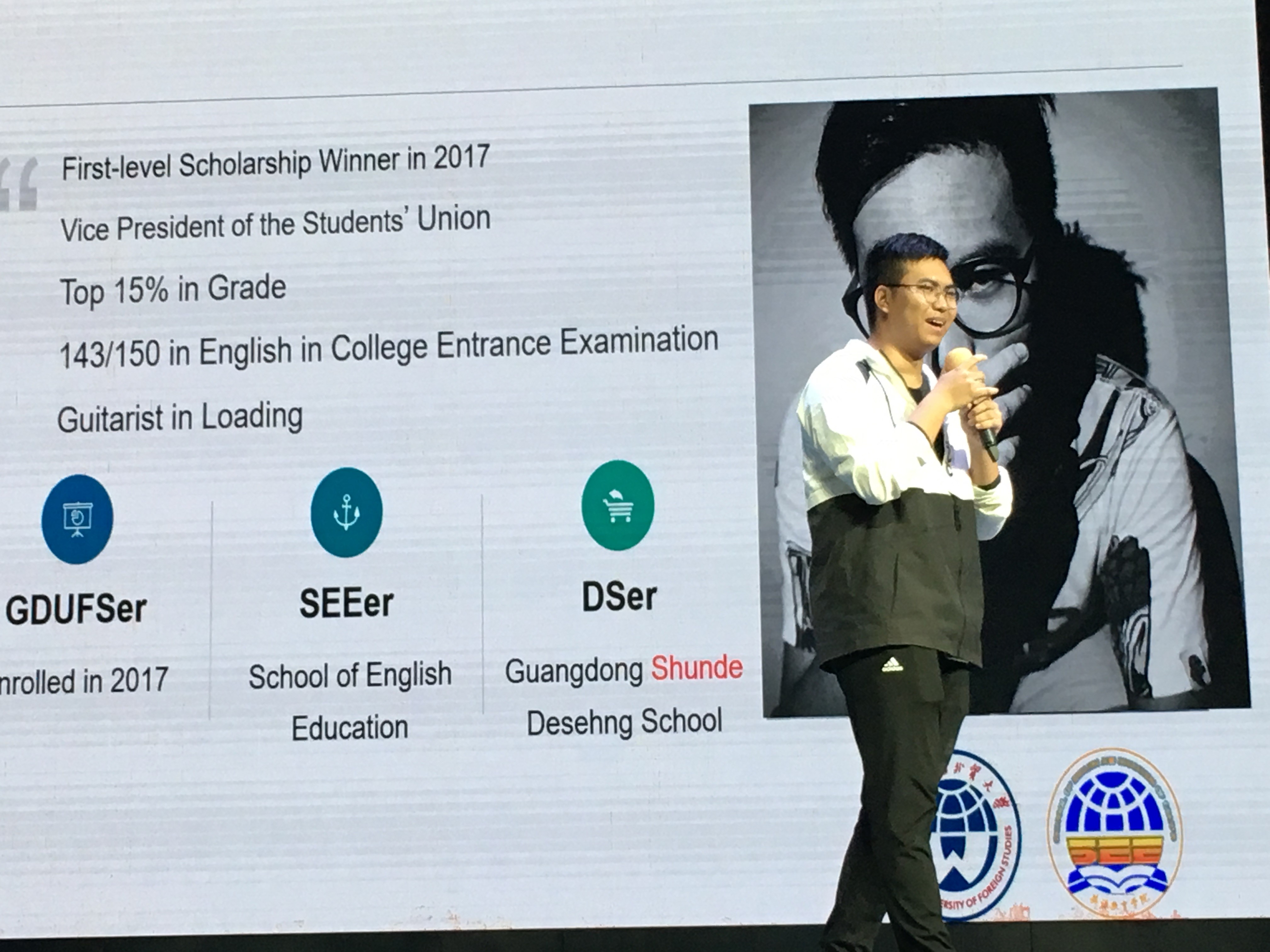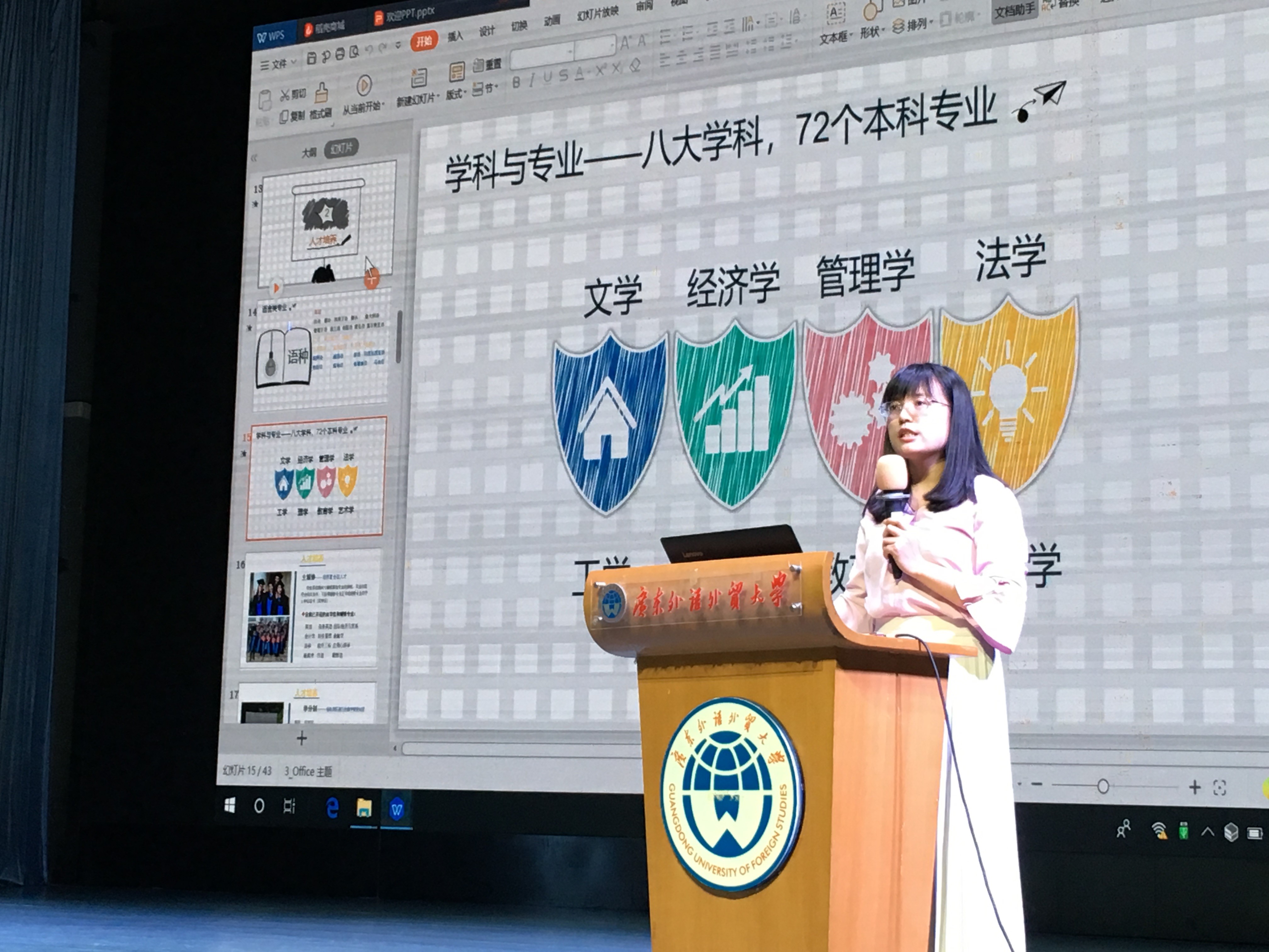 随后,教育学院学生会副主席汤忠和同学和毕业于李兆基中学、现就读于我校新闻学院的周焯嫣同学分别分享了自己的学习经验和广外生活体验, 鼓励师弟师妹们努力学习,希望将来能够梦圆广外。