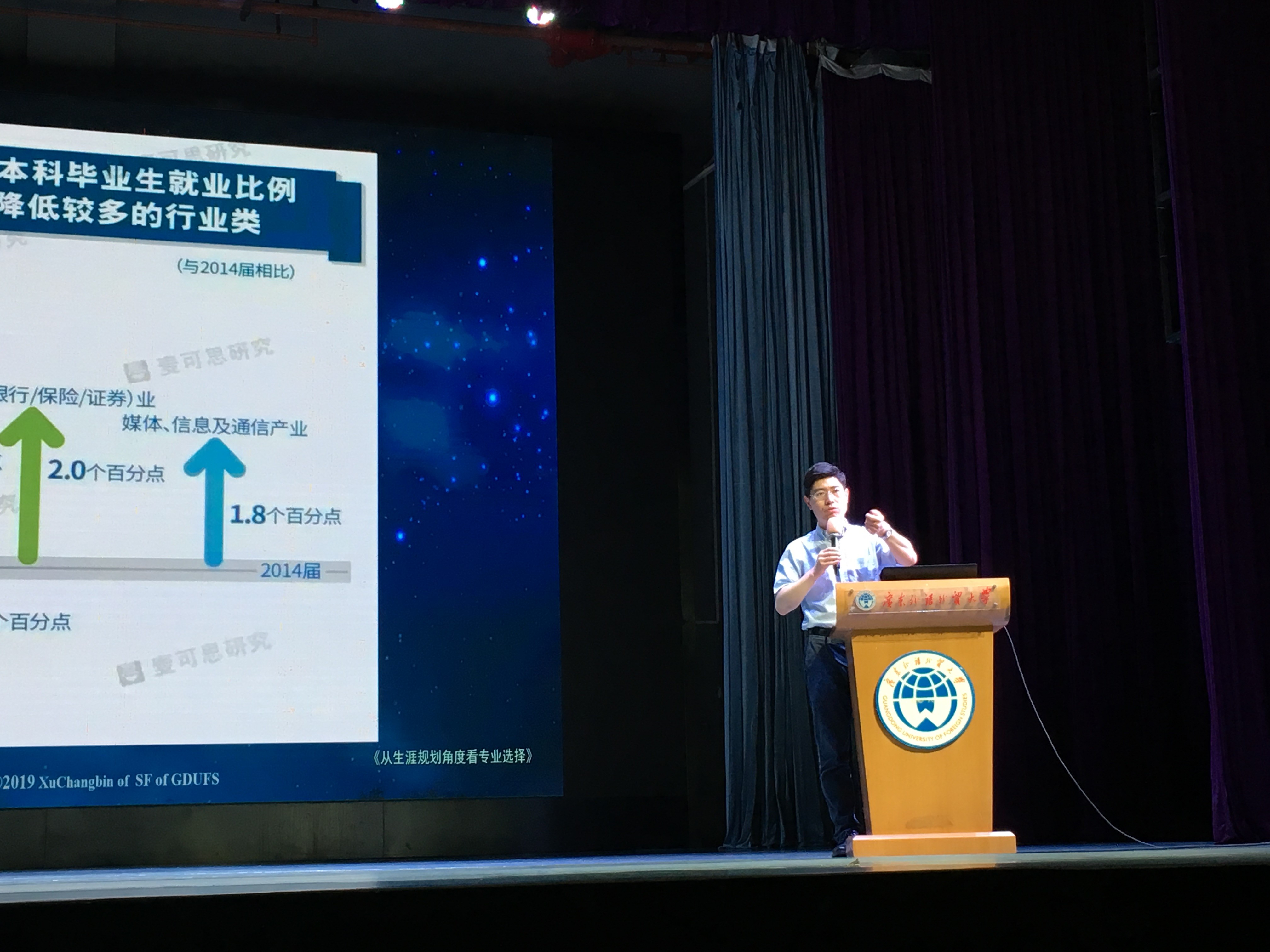 金融学院党委书记徐昶斌为来访的同学做了关于《专业与就业》的讲座。徐书记以其丰富的经验,就大家如何选择专业以及将来的职业规划提供了专业指导。