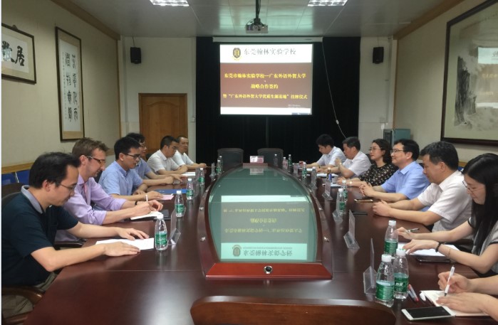 为了加强我校与东莞各中学的沟通与交流,进一步拓展优质生源,2019年5月21日,教务处处长姜琳、信息学院院长蒋盛益、国际学院院长梁学宏等一行赴东莞市翰林实验学校开展招生宣传工作。期间,两校签订了“优质生源基地”合作协议并举行授牌仪式。东莞市翰林实验学校高中部校长刘汉波、国际部校长叶辰、教务部主任刘志军、高三年级级长黄群乐等热情接待了我方代表。