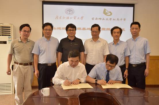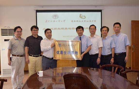 5月27日,广东外语外贸大学与华南师范大学附属中学共建“优质生源基地”签约暨授牌仪式在华南师范大学附属中学举行。我校副校长焦方太、教务处处长兼招生办公室主任袁长青等与华南师范大学附属中学校长朱子平、副校长吴青等进行了友好会谈。
