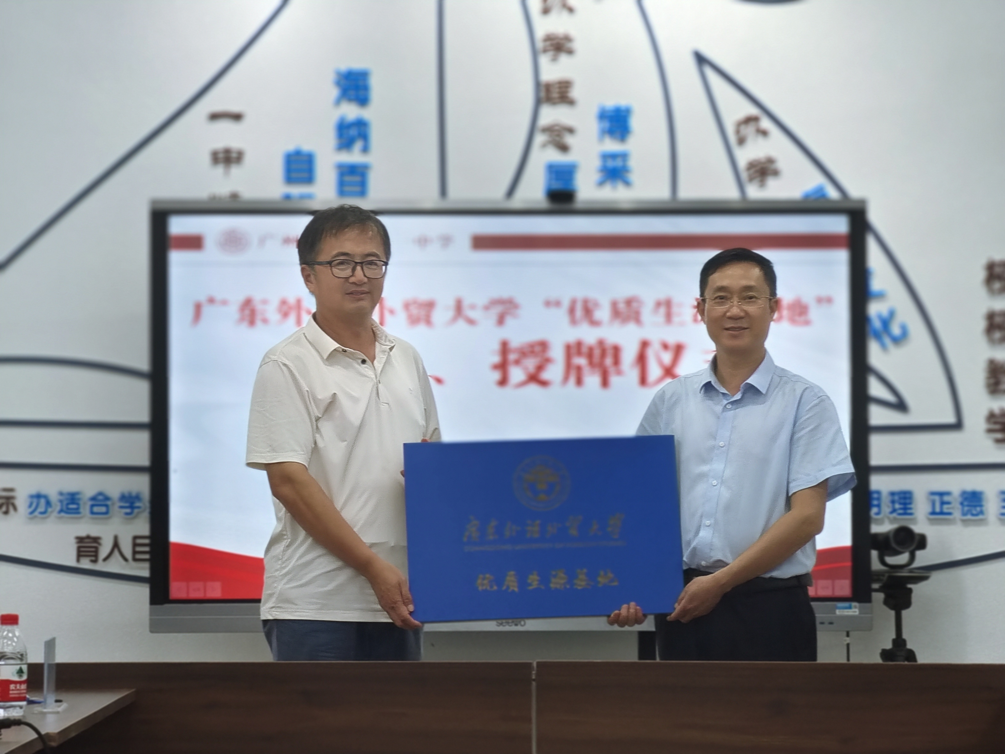 随后,双方就加快推进生源基地建设,实现高质量发展等议题展开了热烈研讨,提出了一系列具体的、可操作性强的建设方案,如开展本科招生宣讲暨志愿填报咨询、选派心理学专业学子赴南沙一中实习、开设小语种兴趣课程等,并举行了“优质生源基地”签约与授牌仪式。