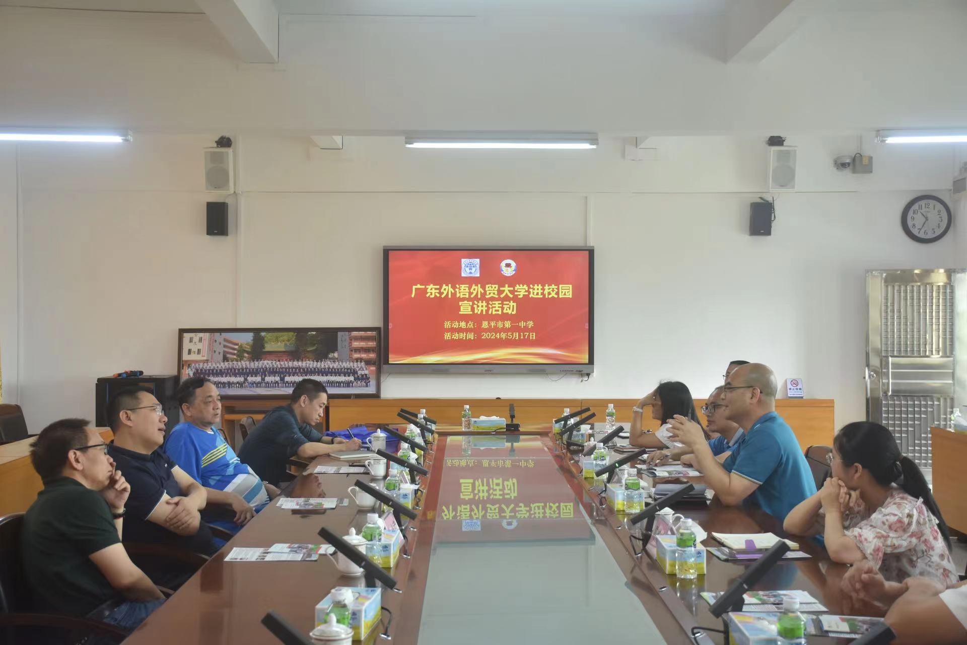 5月16日下午,纪彬一行到开平市第一中学交流,该校伍校长介绍了学校近年来的发展及生源情况,纪彬介绍了学校的基本情况及英文学院学科建设、人才培养等方面的特色,双方就招生工作的进一步安排达成了共识,拟开展寒假招生宣传、志愿填报期间的宣讲活动等。5月17日,纪彬一行等前往恩平市第一中学、江门市培英高级中学、江门市教育局等单位进行会谈交流。恩平市第一中学党委书记、校长何植仓主持交流会,学校领导班子及高中英语教师参加会谈,双方就招生工作、外语教学、人才培养等方面进行交流,并对未来合作的具体形式和内容进行了探讨。在江门市培英高级中学,校领导介绍了培英高级中学的办学历史和教学成果,纪彬则详细介绍了我校的办学理念和特色专业,特别是英文学院在学科建设和国际化人才培养方面的突出成绩。双方就如何更好地开展招生宣传、提高学生报考热情进行了深入探讨,并初步商定了未来的合作方向。