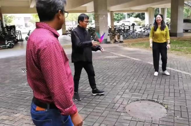 活动第二部分为参加中国传统体育游戏。汉语课堂志愿者对投壶、毽球和跳绳的背景、规则逐一详细介绍并带领外教示范体验,外教们摩拳擦掌,跃跃欲试。经过一番激烈的角逐,罗尼·鲍米克与卡塔日娜·伯莱克分获投壶冠亚军,全体外教和工作人员共同参与体验集体踢毽子和跳大绳。