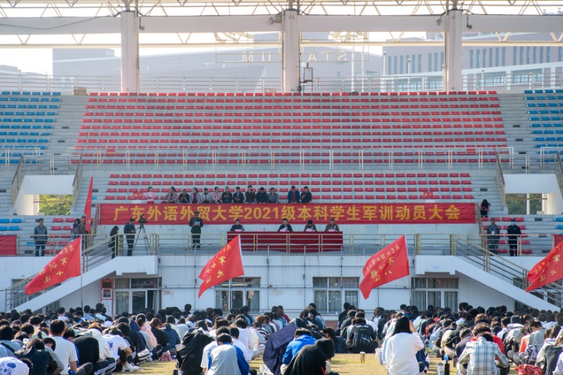 1月1日,2021级军训动员大会在我校南北校区体育场同时进行。校军训领导小组组长、校党委副书记李云明、唐锐,广州市番禺区国防教育训练基地主任黄光忠、训练部部长熊建,军训旅旅长徐冬青、参谋长陈锦权及相关职能部门负责人、各学院负责人、承训教官、教师代表出席大会。