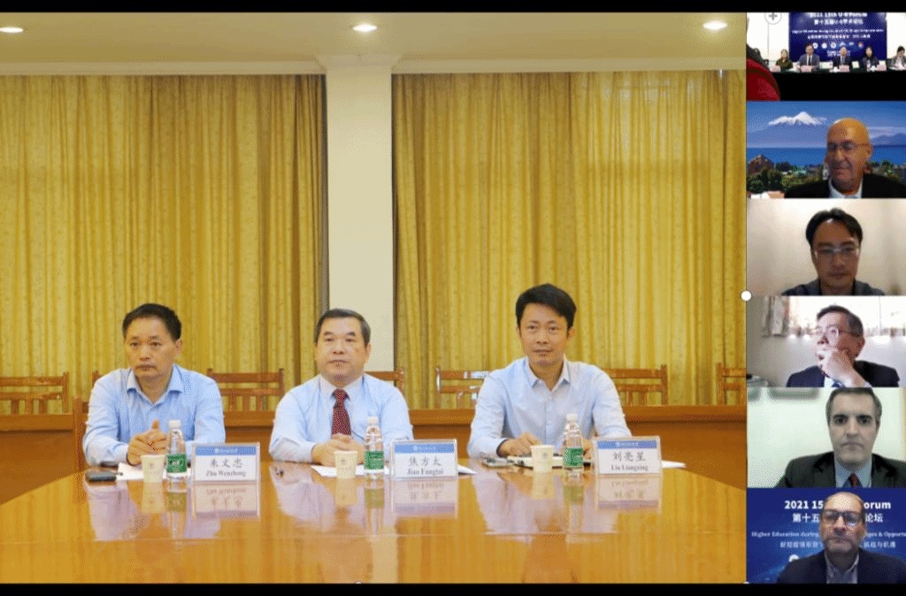 本网讯 10月16至17日,第十五届U-6学术论坛于安徽大学举行。本次论坛的主题为“新冠疫情形势下的高等教育:挑战与机遇”。阿根廷泛美自由大学、安徽大学、岭东大学、新西兰奥克兰商学院、智利圣托马斯大学及我校代表汇聚云端。