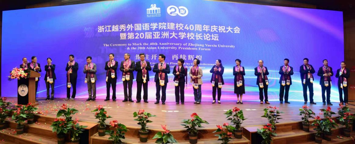 本网讯 10月30日,浙江越秀外国语学院建校40周年庆祝大会暨第20届亚洲大学校长论坛(Asian University Presidents Forum, AUPF)开幕式于浙江越秀外国语大学以线上线下方式隆重举行。来自18个国家和地区的72所高校代表参与了本次论坛,庆祝越秀建校40周年,共商亚洲高等教育发展大计。