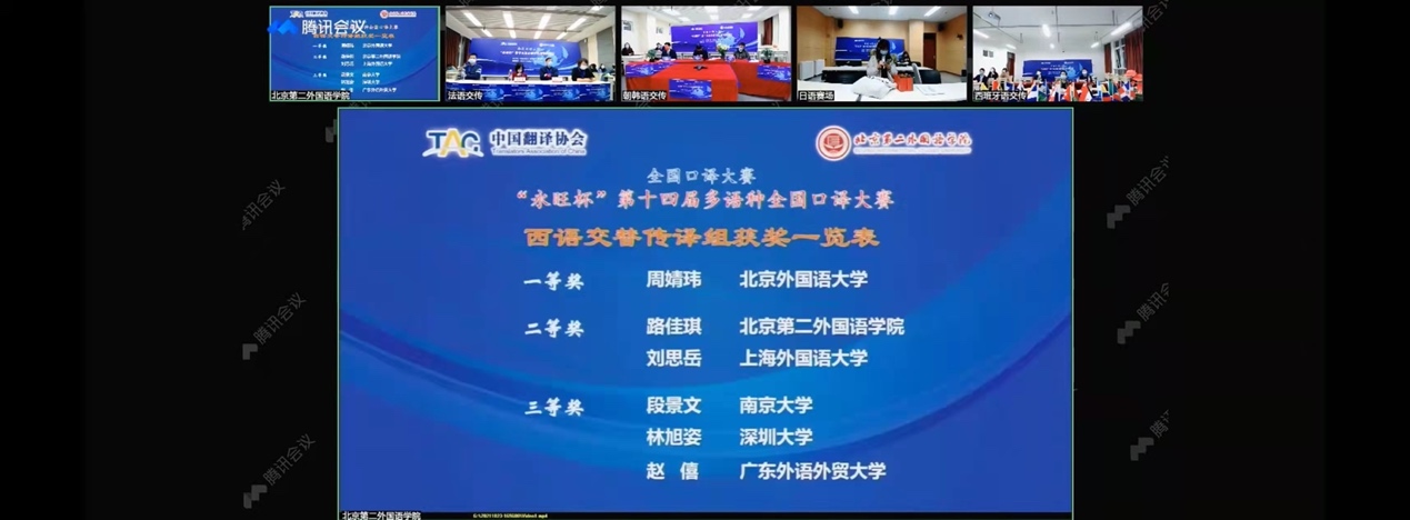 本网讯 10月23日,西班牙语系18级本科生赵僖在“永旺杯”第十四届全国多语种口译大赛中荣获西班牙语组交传三等奖。此次比赛由中国翻译协会和北京第二外国语学院联合主办,于北京第二外国语学院举行。由于疫情的原因,今年的比赛延续并完善去年首创的在线口译比赛模式,通过线上作答的形式开展。