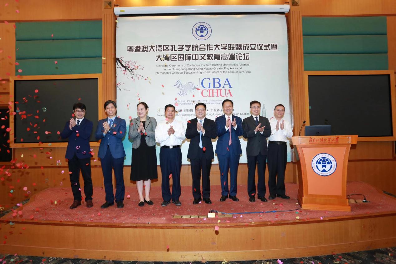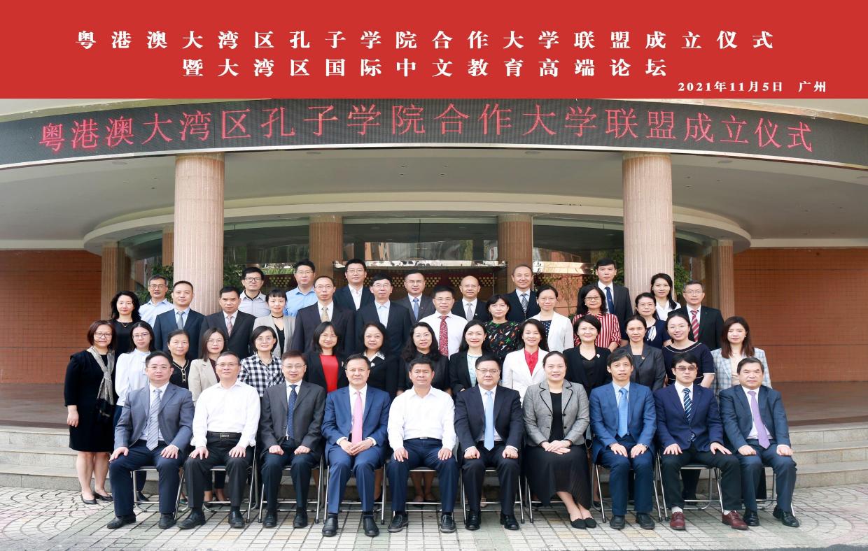 本网讯 11月5日,我校通过线上线下相结合的方式,于北校区举办“粤港澳大湾区孔子学院合作大学联盟成立仪式暨大湾区国际中文教育高端论坛”。粤港澳大湾区孔子学院合作大学联盟是由我校首倡并与香港理工大学、澳门大学、中山大学、华南理工大学、暨南大学、华南师范大学、广州大学和岭南师范学院共同发起成立的区域性合作组织。联盟以“互通互鉴、合力共赢”为宗旨,依托粤港澳大湾区战略地位,旨在构建以粤港澳大湾区孔子学院中方合作院校为主体、其他单位为支撑的区域孔子学院联盟。