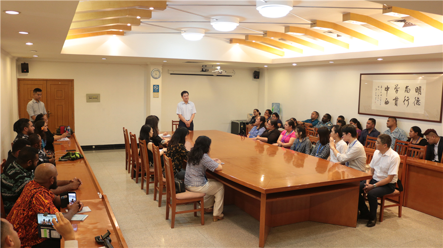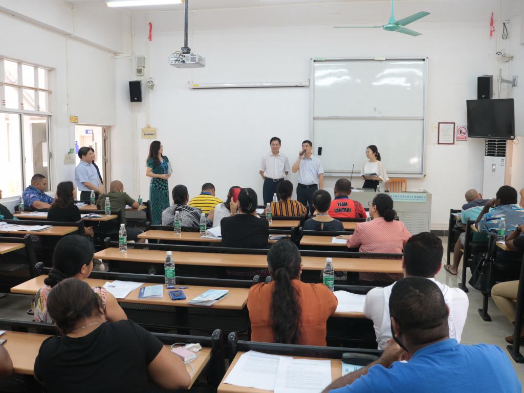 会上,隋广军代表我校欢迎岛国学员前来短期研修,并简要介绍了广东省精准扶贫政策,广东省经济结构及产业升级发展,高新技术运用与粤港澳大湾区建设以及“一带一路”倡议等。