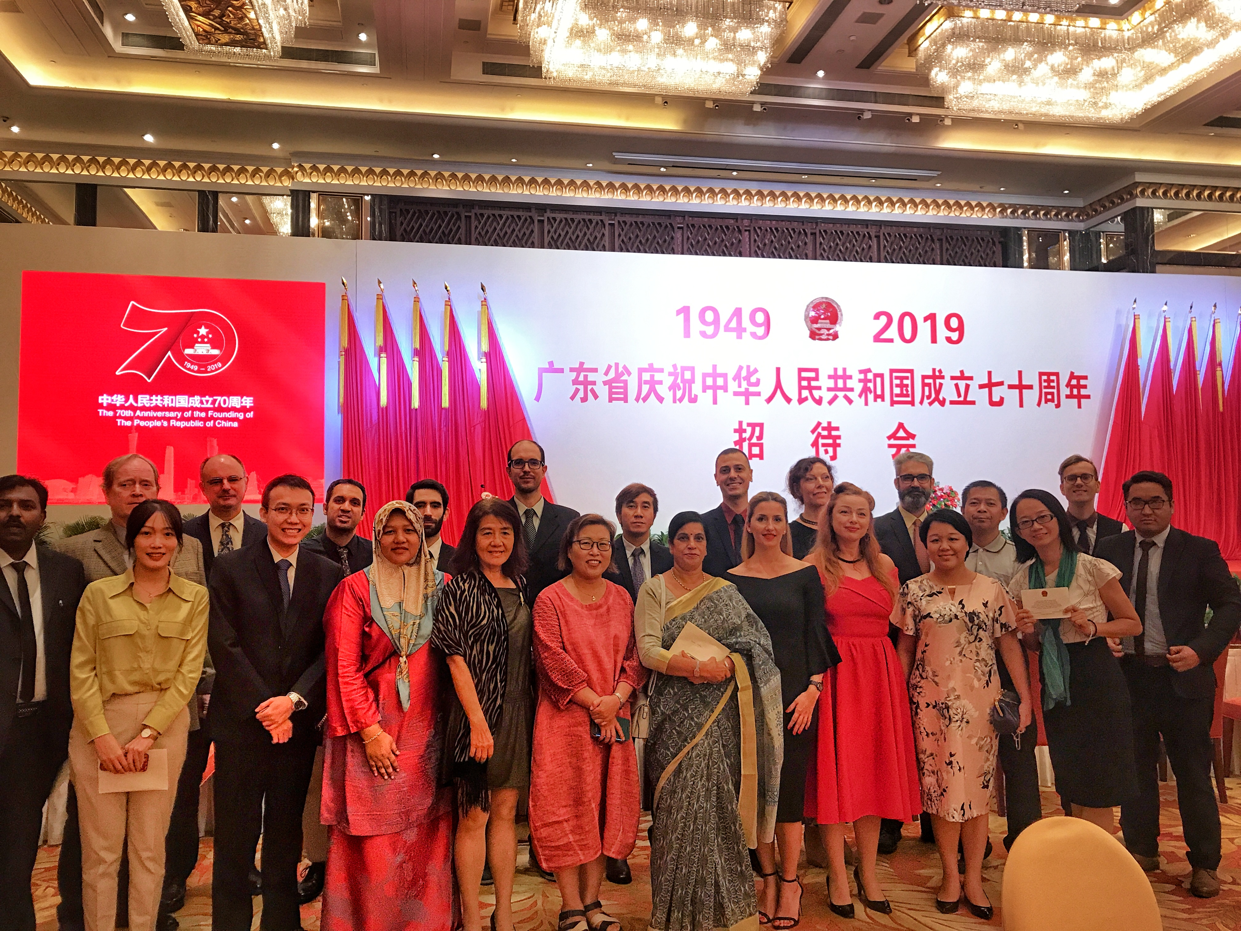 本网讯 9月29日晚,广东省庆祝中华人民共和国成立七十周年招待会在广州举办。广东省委副书记,省政府省长、党组书记马兴瑞在会上致辞。我校外教代表一行25人受邀参加活动。