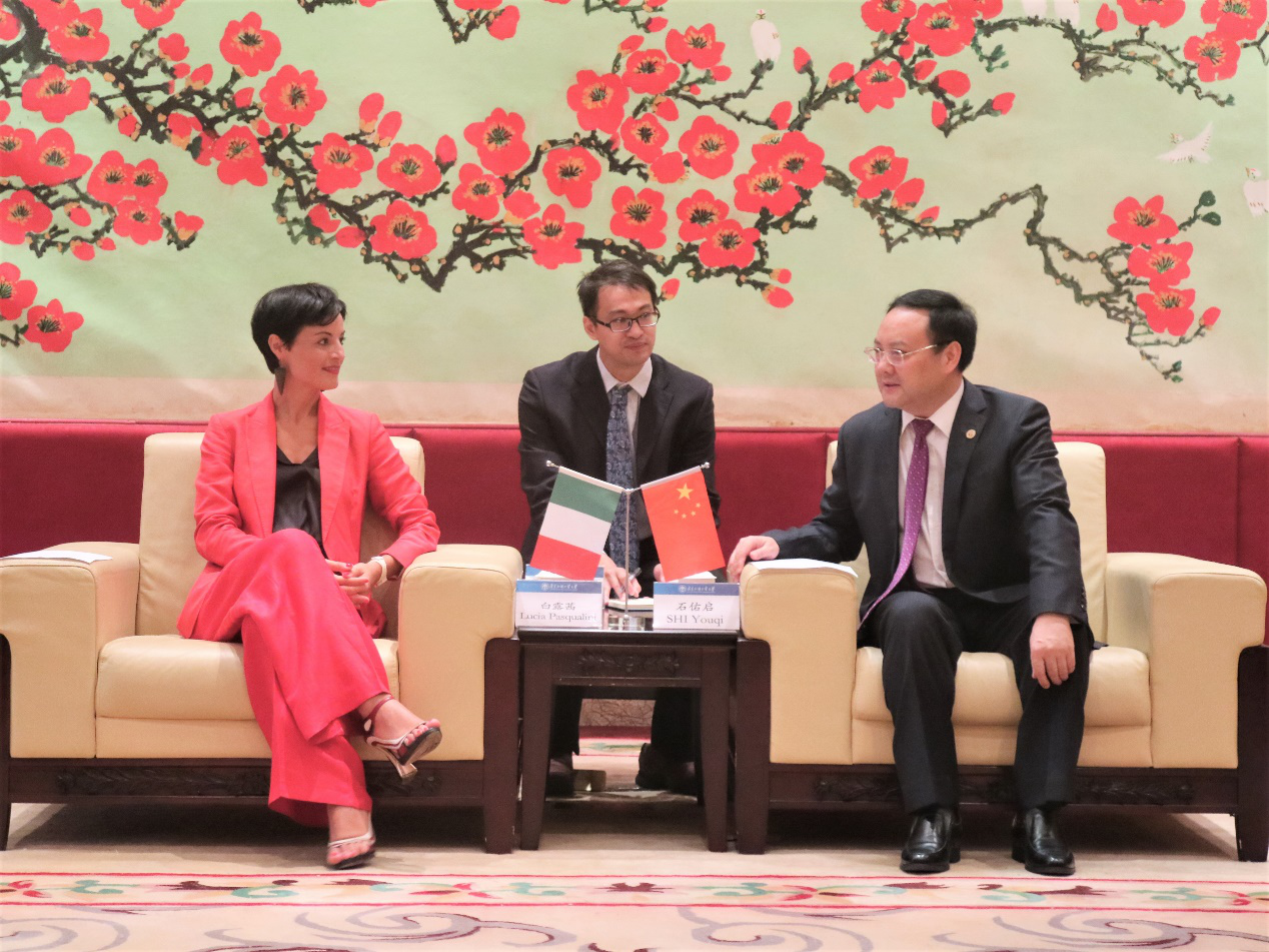 本网讯 10月22日,意大利驻广州总领事馆总领事白露茜一行来访,我校校长石佑启在北校区行政楼贵宾厅会见来宾。双方就加强中意两国文化交流等事宜进行探讨。