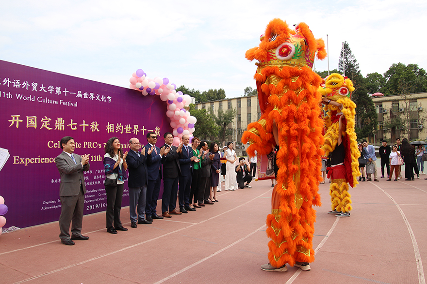 副校长焦方太,哥伦比亚驻广州总领事馆总领事Hernan Vargas Martin,印度驻广州总领事馆总领事Sujit Ghosh、印度尼西亚驻广州总领事馆总领事Gustanto,秘鲁驻广州总领事馆总领事Ivan Silva,土耳其驻广州总领事馆总领事Kurtulus Aykan,意大利驻广州总领事馆副总领事Alice Rubini,泰国驻广州总领事馆副总领事Nipatsorn Kampa,俄罗斯驻广州总领事馆副总领事李三德,乌干达驻广州总领事馆金融随员John Lwanga等驻穗总领馆代表出席本次开幕式及文化节活动。