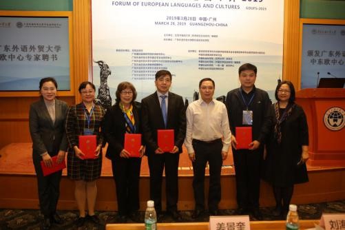 3月28日,2019欧洲语言文化论坛在我校举行。论坛开幕式上举行了我校中东欧研究中心揭牌仪式。教育部高等学校外语教学指导委员会非通用语种类专业教学指导分委员会主任委员姜景奎、我校副校长刘海春、中国非通用语教学研究会会长钟智翔、北京外国语大学欧洲语言文化学院院长赵刚在开幕式上致辞。