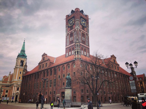 学校距离宿舍约5分钟的步行路程,位于托伦古城的边缘,沿途是科技馆、旧市政厅、老教堂、博物馆、哥白尼雕塑、条顿骑士团废墟……漫步古城,这些建筑遗迹都是历史交替更迭的倒影佐证,此刻的我也与这座中世纪古城的变迁共享同一脉搏。每个周末老城中会有热闹的市集,可以买些鲜花水果和特色小玩意。整个托伦并不大,老城的石板路半天就能踏完,日常出行购置生活用品多是搭乘电车,而波兰境内更有十分便捷的铁路网,虽然速度赶不上中国高铁,但在晃晃悠悠的车厢中穿越城市也别有一番风味。值得一提的是波兰交通对于学生的优惠力度非常大,入学之初在学校负责老师的帮助下我们就顺利拿到了波兰学生卡,凭借这张学生卡无论是电车还是火车都能得到半价的优惠。