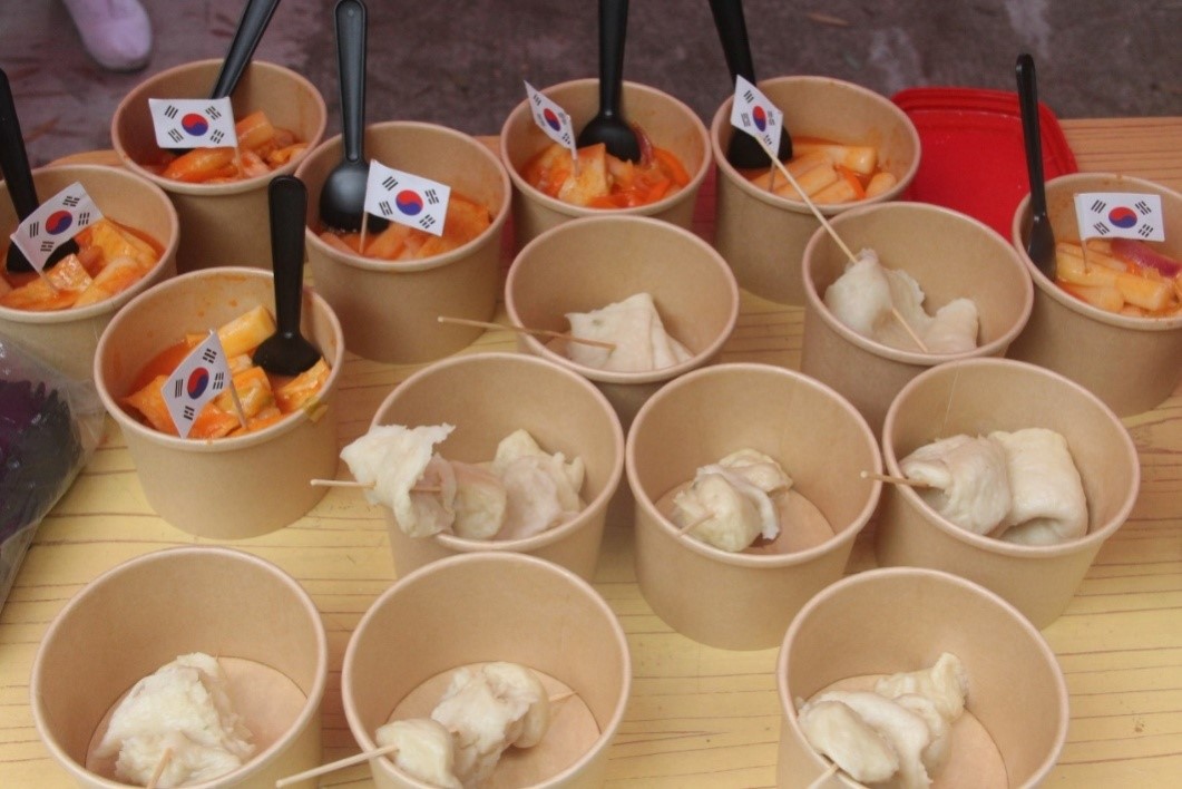 朝鲜语系摊位的韩式年糕和鱼糕
