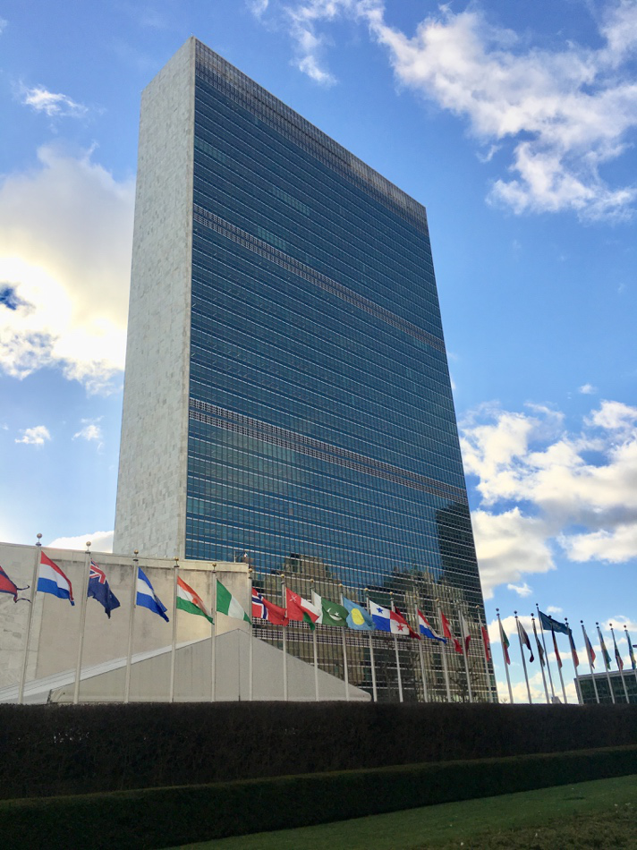 纽约时间2018年12月17日早10点,拿着联合国实习offer的我正衣着正装,从曼哈顿下城来到位于中城的联合国大楼前,准备开始第一天实习。此刻太阳正晴,被各国国旗环绕的联合国大楼显得特别地高大与雄伟。为了这一天,我从广外一路辗转来到美国,走进联合国于我不仅是一份追寻了多年后得偿所愿的梦想,更是一份将永存我心的持久感动与骄傲。