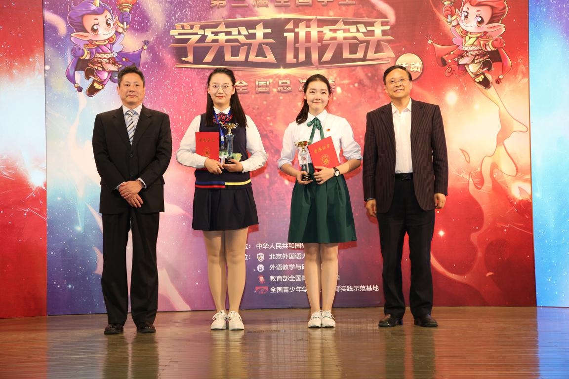 广东省代表队选手在总决赛的各项竞赛中都取得了优异成绩,特别是来自广州市第二中学的范晶获得演讲比赛初中组全国亚军和最佳风采奖,这是广东省代表队参加全国学生“学宪法讲宪法”全国总决赛以来的最好成绩。来自汕头市龙湖区金珠小学的李佳霖、广州市执信中学的张熹分获演讲比赛小学组、高中组二等奖;我校学子金礼静获得演讲比赛高校组三等奖。李佳霖、范晶、张熹三位同学组成的团队获得中小学生知识竞赛二等奖。由我校金礼静、陈嘉颖、暨南大学的王楚欣、五邑大学陈国健四名同学组成团队获得大学生辩论赛三等奖。来自汕头市华侨中学的杨菁同学通过网络海选,晋级参加了全国总决赛,并取得演讲比赛高中组二等奖。我校教师潘高峰、全燕获得获知识竞赛优秀指导老师二等奖,潘高峰、林茂辉获得演讲比赛优秀指导老师三等奖。