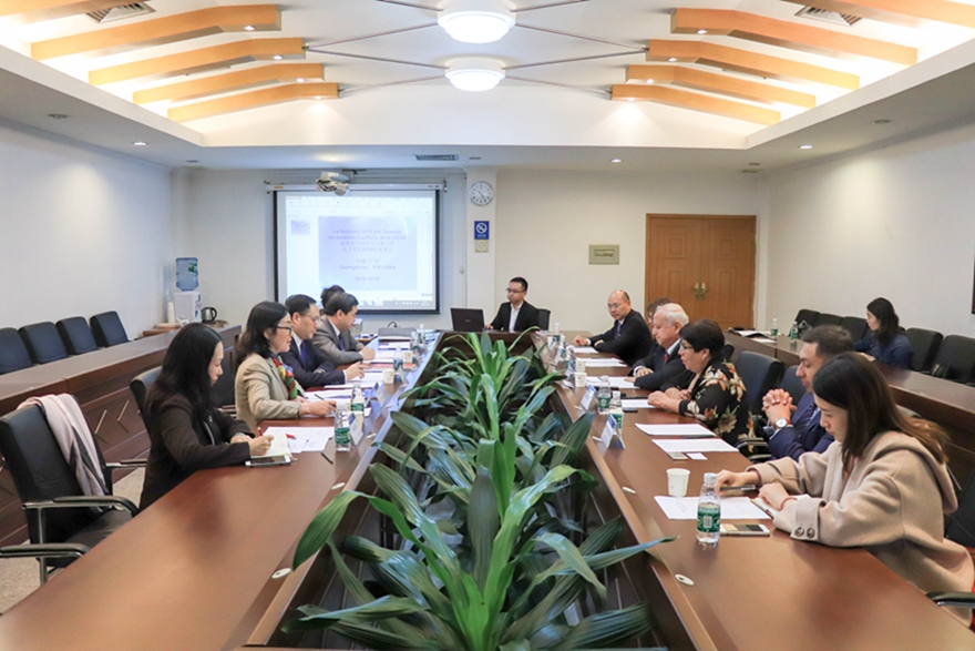 本网讯 12月7日,秘鲁圣玛利亚天主教大学及佛得角大学代表团一行来访,我校校长石佑启,副校长焦方太在北校区行政楼贵宾厅会见来宾。双方就孔子学院建设及拓展校际间合作事宜进行深入交流。