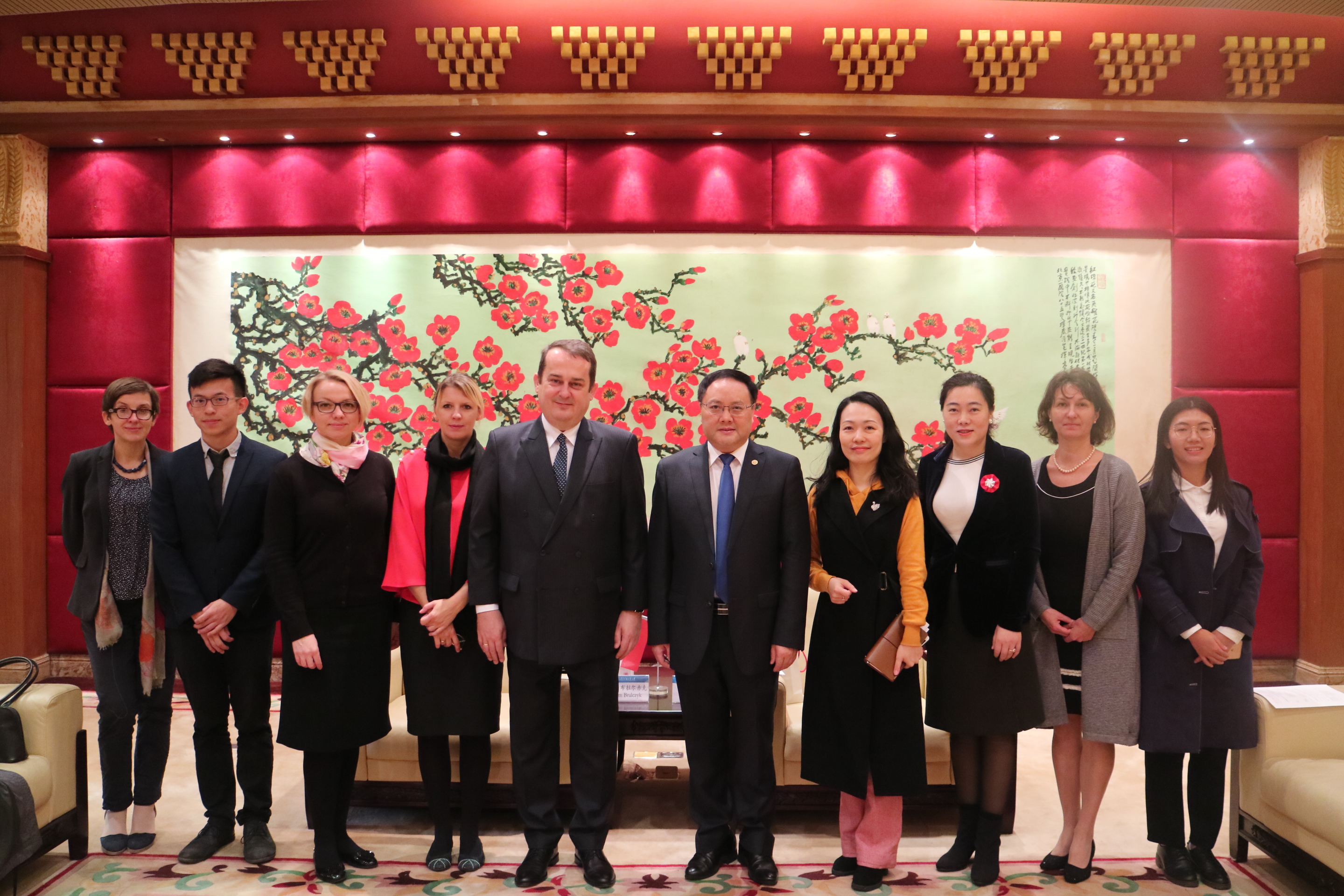 本网讯 12月19日,波兰驻广州待任总领事亚当·布拉尔赤克(Adam Bralczyk)一行来访,我校校长石佑启在北校区行政楼贵宾厅会见来宾。双方就我校波兰语专业建设及中波两国文化交流等进行交流探讨。