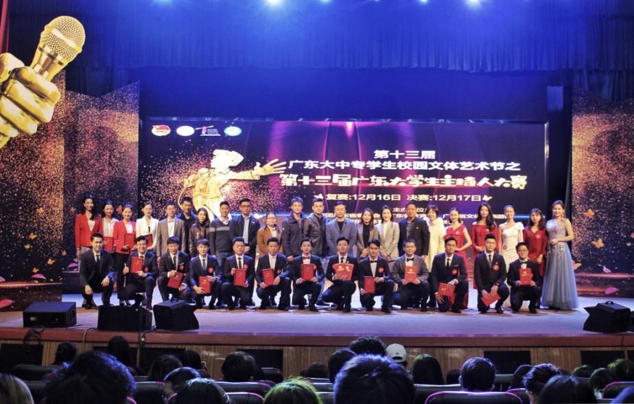 本网讯 12月18日,第十三届广东大中专学生校园文体艺术节之“时代强音 筑梦远航”主持人大赛上,我校新闻学院学生刘克洪夺得非专业组一等奖及最佳口才奖,这是继舞蹈大赛、歌手大赛后我校在文体艺术节中第三次夺冠。新闻学院学生王怡兰荣获专业组二等奖及最具风采奖。
