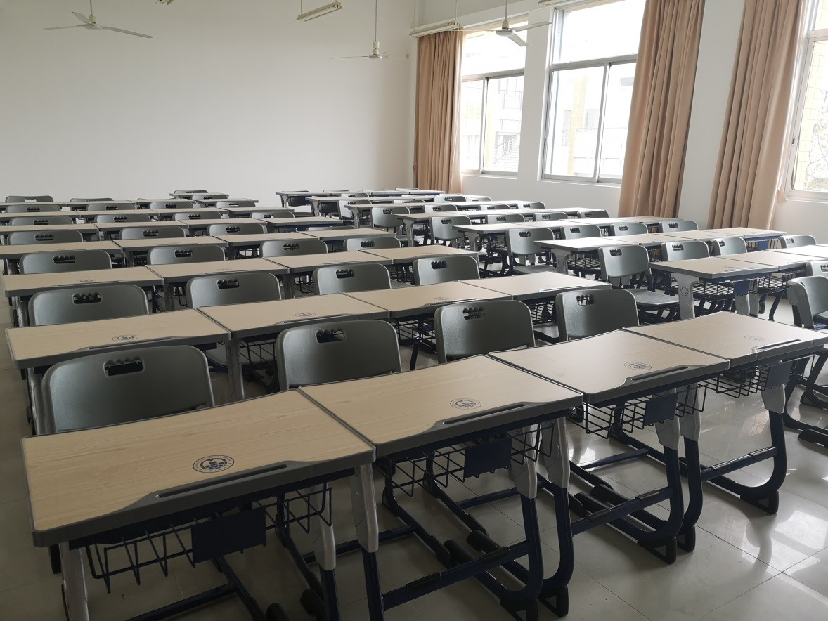 据介绍,本次采购项目根据南校区教室现状,结合在校学生体型情况及学生活动需求,将原宽度600mm、厚重、破旧的单人位活动课桌椅更新为宽度650mm、轻便、更符合人体工程学设计、包含防滑静音胶套的全新课桌椅。经过多次与供货商协调,选择分子渗透丝印法,将广东外语外贸大学标识(logo)牢固印在课桌表面,更加彰显了学校的特色。