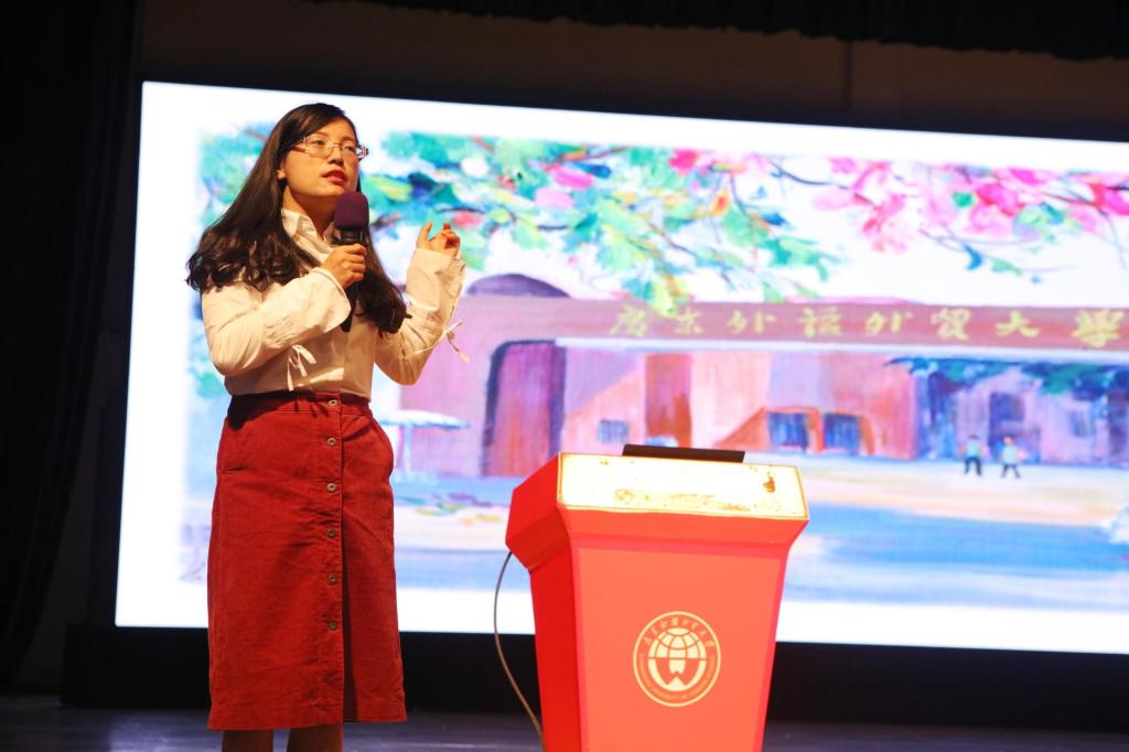 最后,由我校两位优秀的学生作为代表向来访的师生分享了学习的方法以及在广外的趣事,鼓励同学们相信自己,努力挖掘自身的潜力,树立正确的目标,并为之不懈努力。