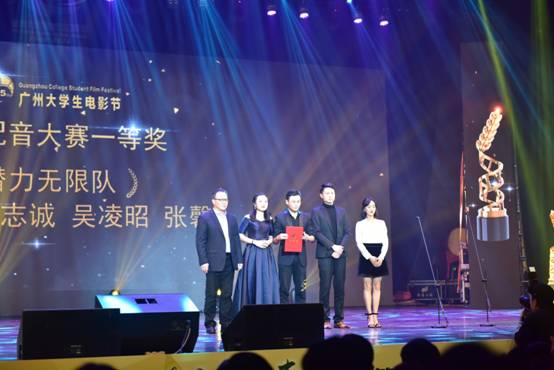 本网讯 第15届广州大学生电影节(简称“大影节”)闭幕式颁奖典礼暨“万表之夜”近日在暨南大学举行。本届大影节首创“青穗奖”奖杯,颁给大影节微电影剧本、原创电影剧本、配音、影评、摄影、微影评等八个竞赛单元的冠军得主。配音大赛冠军由我校队伍获得,中央戏剧学院队伍和西安培华学院队伍分获第二名和第三名。