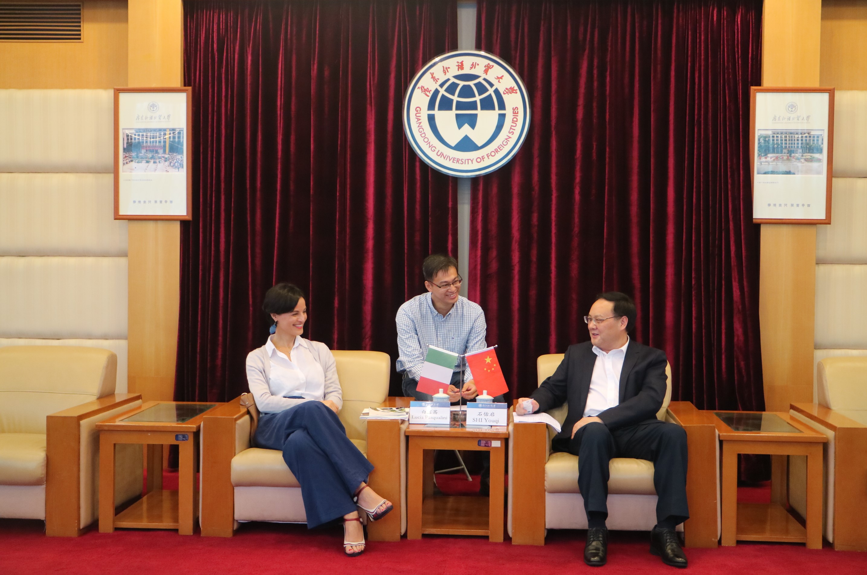 10月15日,新任意大利驻穗总领事白露茜(Lucia Pasqualini)来访,我校校长石佑启在北校区行政楼迎宾厅会见来宾,双方就我校意大利语专业建设、人才培养、意大利语言文化周等进行交流。