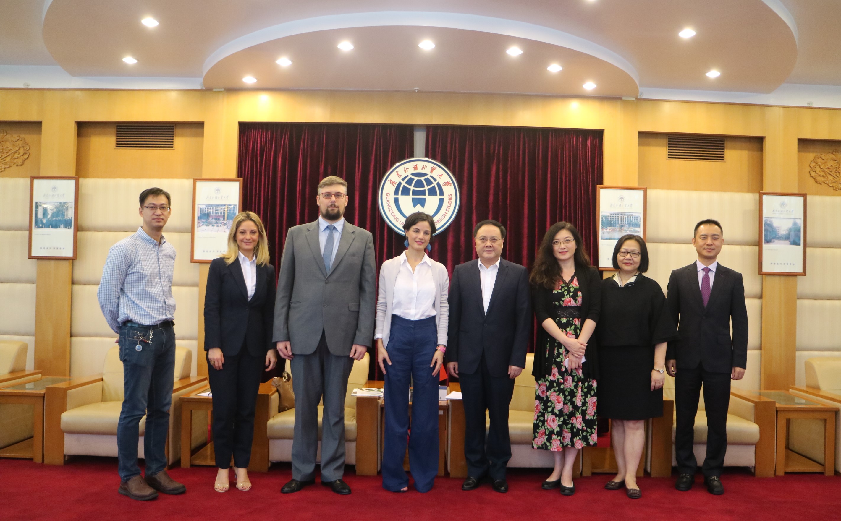 国际合作与交流处处长蔡红,西方语言文化学院院长杨可及意大利语专业教师参加会见。