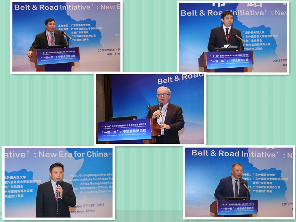 10月26日至28日,“一带一路”非洲研究联盟成立大会暨首届学术研讨会在广州举办。本届论坛由广东外语外贸大学主办、广东外语外贸大学非洲研究院、非洲广东总商会承办,广州市政府新闻办公室和广东进出口商会协办。会议得到了广东省政府、各联盟发起单位和各非洲国家驻广州总领事馆的大力支持。来自世界银行、联合国开发计划署等国际组织和埃及、埃塞俄比亚、塞内加尔、肯尼亚、尼日利亚、加纳、南非、坦桑尼亚、喀麦隆、吉布提、布基纳法索、英国、挪威、中国等34个国家和地区的智库专家、知名学者、政府官员和企业代表与会。