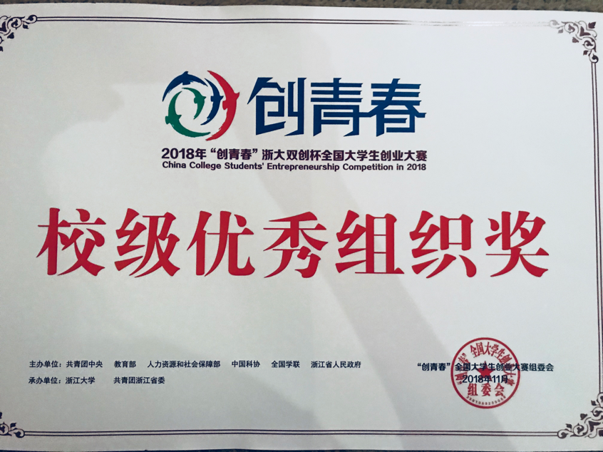 10月31日至11月3日,由共青团中央、教育部、人力资源和社会保障部、中国科协、全国学联、浙江省人民政府主办,浙江大学、共青团浙江省委承办的2018年“创青春”浙大双创杯全国大学生创业大赛终审决赛在浙江大学举行。我校学子从全国197所高校的369件作品中脱颖而出,获得两项金奖、一项银奖,实现“创青春”国赛金奖零的突破,金奖数位列全省第二,在全国同类院校中排名第一,我校同时荣获国赛组委会颁发的“校级优秀组织奖”。