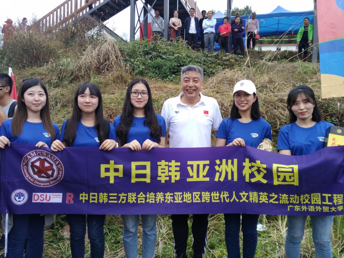 11月4日上午,我校亚洲校园部分中日韩学生以体验组选手的身份参加了梅州市平远县八尺镇角坑村举行的南粤古驿道定向大赛。广东省人民政府副省长许瑞生出席开幕式并为大赛鸣锣开赛。他勉励我校亚洲校园的中日韩学子努力学习,加强运动,以丰富的知识、充盈的智慧和健康的体魄为构建人类命运共同体作出贡献。