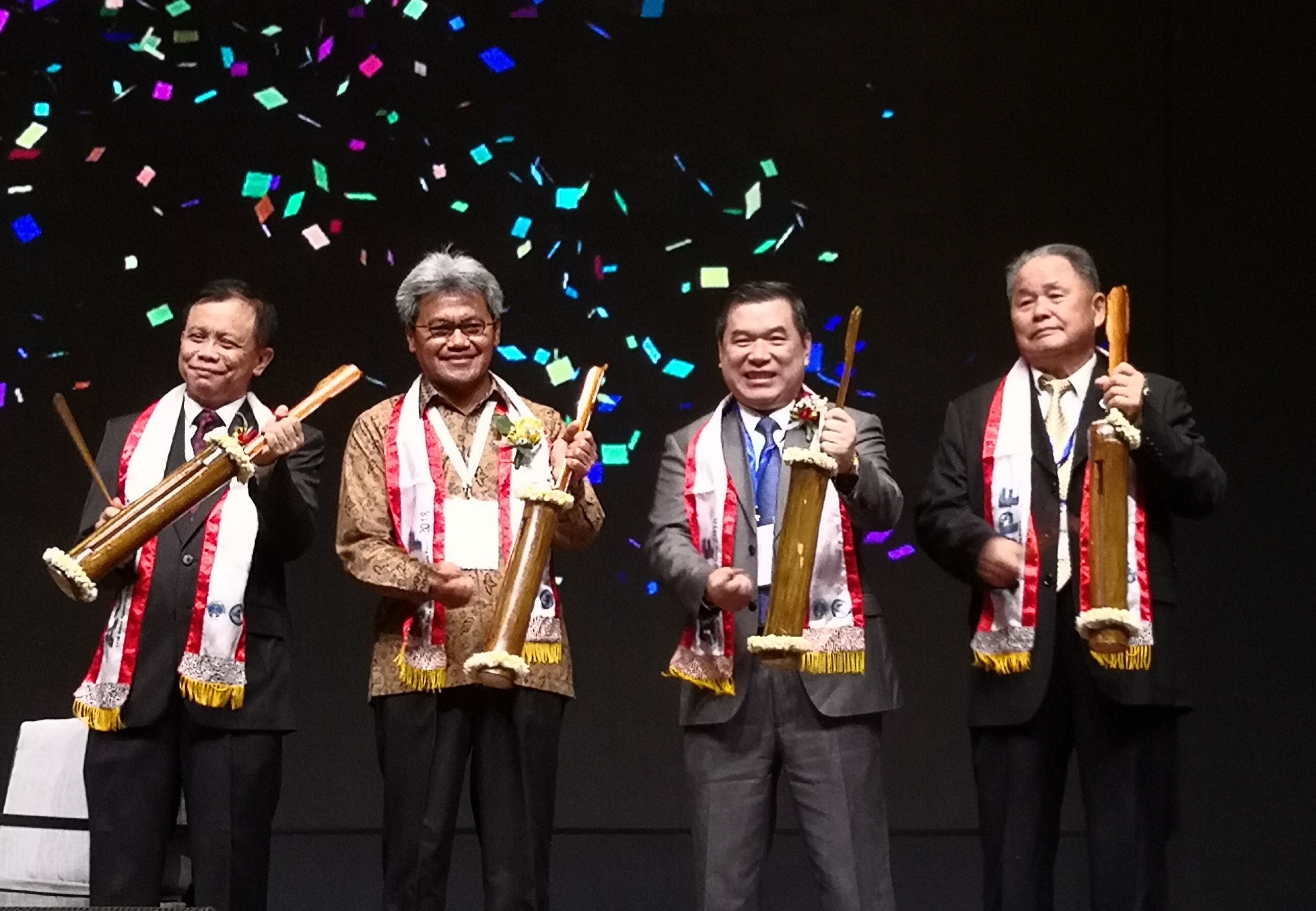 印尼彼得拉基督教大学校长吉万多罗·哈尔吉多(Djwantoro Hardjito)代表本次论坛的主办方致欢迎辞。印尼科研与高等教育部秘书长艾浓·纳因(Ainun Na’im)作主旨发言, 祝愿本届论坛取得圆满成功并进一步推动亚洲高等教育的发展。随后,吉万多罗·哈尔吉多、艾浓·纳因、焦方太与论坛创始人之一庄明英一起击响印尼传统乐器Kentong, 宣布第十七届亚洲大学校长论坛正式开幕。