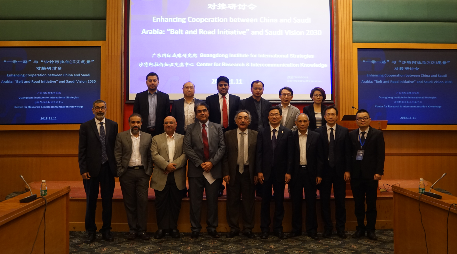 本网讯 11月11日下午,“一带一路”与“沙特阿拉伯2030愿景”对接研讨会在我校北校区行政楼国际会议厅举行。我校副校长何传添,沙特阿拉伯知识交流中心主任叶海亚先生出席会议并致辞。