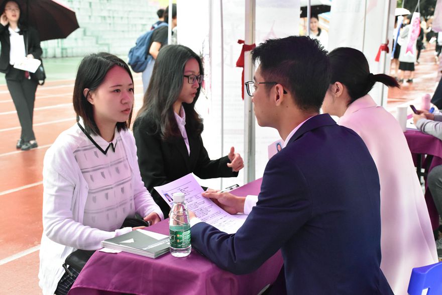 本网讯 11月17日上午,由广东省教育厅主办,我校承办的广东省2019届高校毕业生就业供需见面会(一带一路人才暨外语外贸管理类专场)于我校北校区田径运动场举行。本次见面会吸引了200多家用人单位到场,包括南方航空、招商证券、比亚迪、捷普电子、苏宁易购、神州优车、宁波银行深圳分行和广外外校等优质用人单位,提供近5000余个就业岗位,涵盖外语、外贸、教育、经济、管理、计算机、艺术等专业,吸引了众多的高校应届毕业生前来求职应聘。