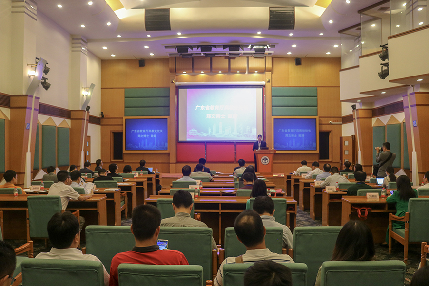 郑文在致辞中强调,广东在创新创业教育有得天独厚的优势:产业优势、粤港澳大湾区建设、政府政策和经费的支持等。他提出了广东教育厅在创新创业教育工作的特色和亮点,牵头建设了《创新思维训练》和《批判性思维导论》两门课程,向全省高校开放,致力于培养学生的创新思维,力求创新创业教育向精品化、系列化和结构化发展。他对我校创新创业教育予以高度肯定,希望我校继续发扬广东省创新创业示范校的引领示范作用,为我省创新创业教育事业做出新的贡献。
