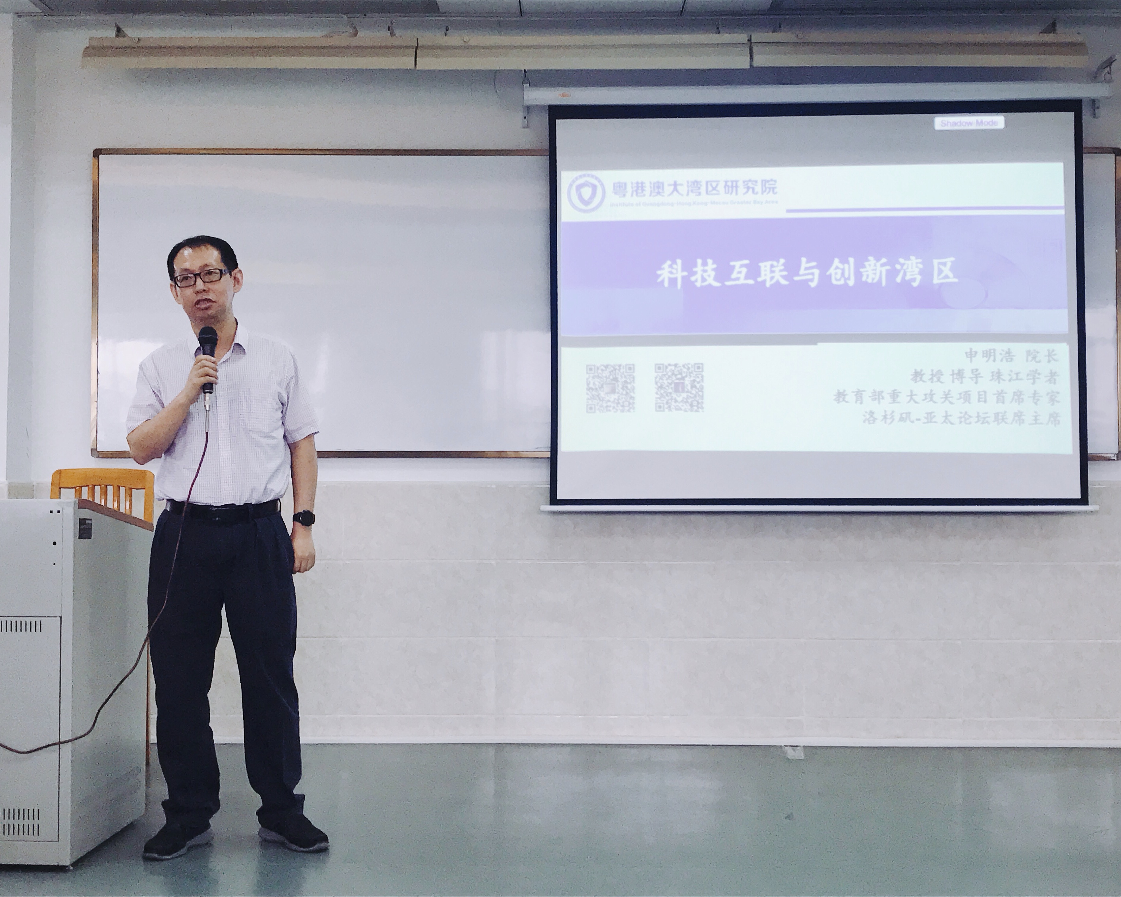 为深入学习贯彻习近平总书记视察广东重要讲话精神,11月15日下午,会计学院邀请我校思政宣讲团专家、粤港澳大湾区研究院院长、珠江学者、教育部重大项目首席专家申明浩在南校区教学楼D312室为会计学院教工作了一场题为“科技互联与创新湾区”专题讲座。讲座由会计学院党委书记孙家和主持,学院50余名教工参加。