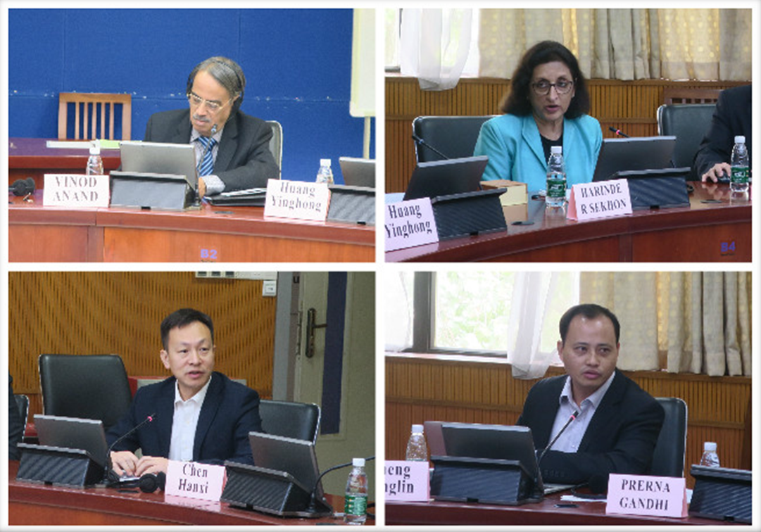 研讨会由广东国际战略研究院副秘书长陈寒溪主持。印度代表团团长、印度辨喜基金会高级研究员阿纳德首先发言,他首先就中印两国关系走向做了介绍,指出习近平主席和莫迪总理曾多次会晤,并同意推进全球贸易自由和多边主义发展。印度辨喜基金会高级研究员哈林德指出无论是中国还是印度,每个国家都应遵循国际规定,中印两国也应携手,共同应对各种国际问题。印度金砖国家研究院院长辛格指出中印两国应采取措施,促进两国贸易的良好发展,同时也可以通过留学生交换来推动两国的教育交流,印度FORE管理学院副教授法伊撒指出中印贸易有利于解决能源安全以及人员流动的问题,同时中印在商业往来中也应注意平衡贸差的问题。