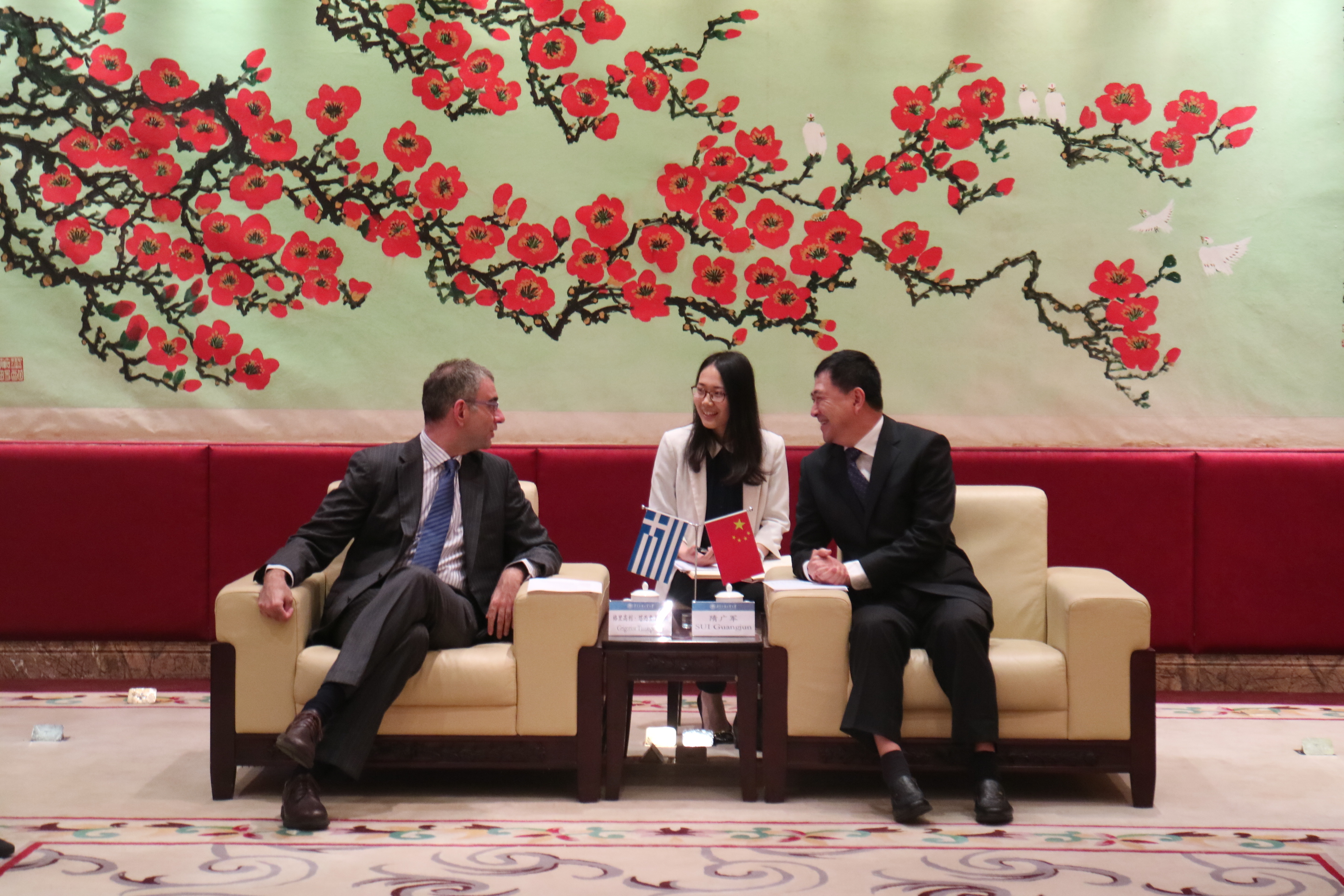 隋广军详细介绍了我校发展现状,包括学科建设、人才培养及我校希腊语专业建设等。他提到,我校于2015年开设希腊语专业,是华南地区唯一开设希腊语专业的高等院校。在我校希腊语专业建设的过程中,希腊驻穗总领事馆提供了很多支持与帮助,他表示由衷感谢,希望在总领事的支持下,与更多希腊的高校建立合作关系,深化合作交流。