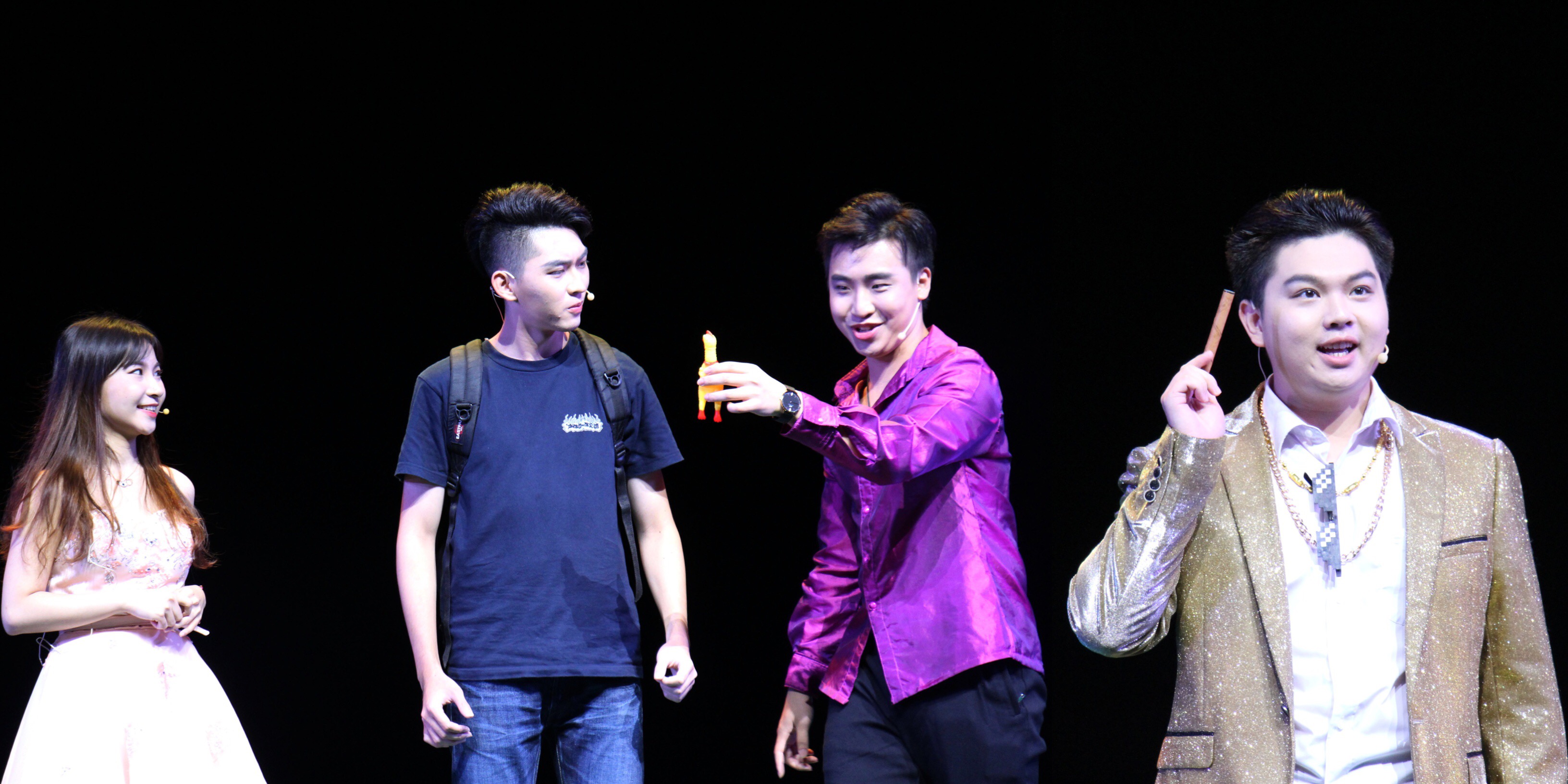 我校合唱团表演节目《月亮今晚要出嫁》是一首关于布朗族民族风俗的歌曲,采用布朗语的语气词作为伴奏,曲子活泼轻快,表达了布朗族人的热情以及待嫁的紧张雀跃。而《阿拉木汗》是一首表达维族青年爱情的歌曲,同样活跃风趣,歌词采用一问一答的形式,赞美阿拉木汗的美丽和维族青年的爱情。广外艺术团话剧队表演原创小品《No作No贷》,讲述了诈骗团伙在校园里进行骗贷的故事,提醒高校大学生在日常生活中对新型网络诈骗手段要提高警惕并做好有效防范。表演中,大学生与犯罪分子斗智斗勇,交锋之中笑点层出。