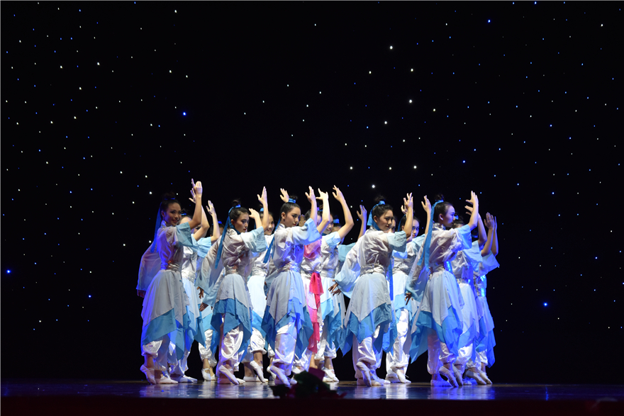 中国语言文化学院带来舞蹈《活着1937》,在压抑的音乐声中,身穿不同的民国服装的女子如同傀儡一般从舞台的四周登场。她们有的是学生,有的是母亲,有的是农妇,有的甚至仅仅是孩子。随着枪声响起,紧凑的舞步和一次次的倒地之后艰难的起身,将手无寸铁的女子在面临战争时为了活着而痛苦无力的挣扎的场景展现得淋漓尽致。突然,一个手抱婴儿的妇女的闯入让他们从麻木中醒来。舞步开始变得坚定而有力,她们用自己的双手共同托起了孩子,代表着在绝望中托起了希望。同样获得一等奖的国际商务英语学院的《问天梦·舞芳华》则为我们讲述了我国的航天梦。伴随着激昂的音乐,一群舞者以刚劲有力、整齐一致的动作,展示了航天工作者逐梦的动力和干劲;随着低谷时期的来临,众人在慢板的音乐声中变得低落,动作也变得缓慢;突然,一个小女孩拿着纸飞机出现在舞台,她对蓝天的向往让大家记住了自己的初心。最后,众舞者将小女孩托起,女孩手里的简陋的纸飞机也变成了精致的飞机模型,寓意着航天工作者鼓起勇气,最终实现了梦想。