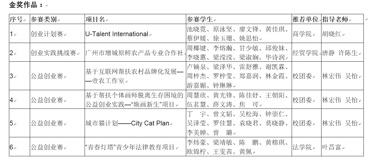附:2018年“挑战杯·创青春”广东大学生创业大赛我校获奖情况