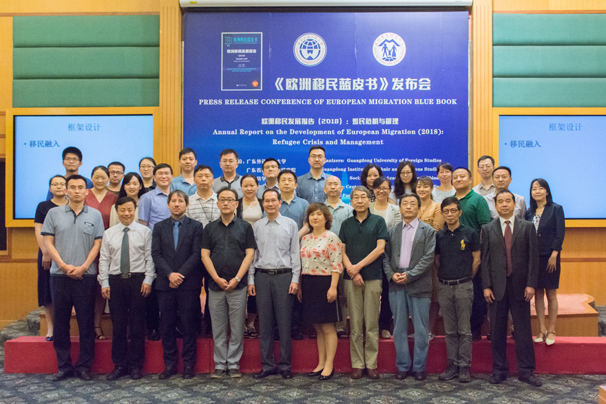 本网讯 由广东外语外贸大学、广东省民族宗教研究院和社科文献出版社主办,国际移民研究中心承办的《欧洲移民蓝皮书》发布会于6月8日在北校区国际会议厅举行。我校副校长阳爱民、广东省民族宗教研究院院长黄心怡、社会科学文献出版社副社长梁艳玲、法国驻广州领事馆高等教育署负责人倪蓝天等嘉宾受邀出席本次发布会并发言致辞。50多位专家和学者参加了发布会。
