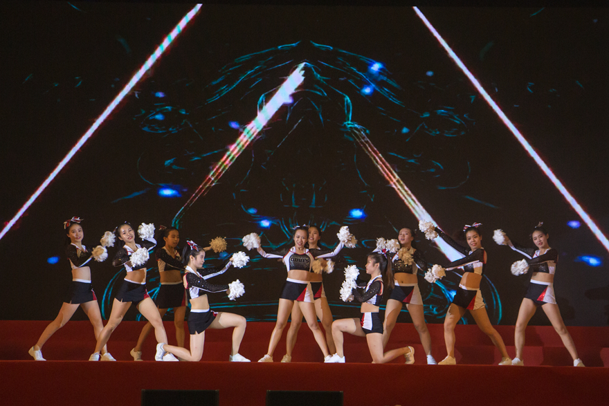活力四射广外健美操啦啦操对带来表演《Five Four Three》,他们以动感的舞步诠释青春的魅力,以高难度的体操动作展示了力量的美感,给新生们传递了奋发向上、张扬热烈、朝气蓬勃的精神力量,吹响了青春起航的号角。