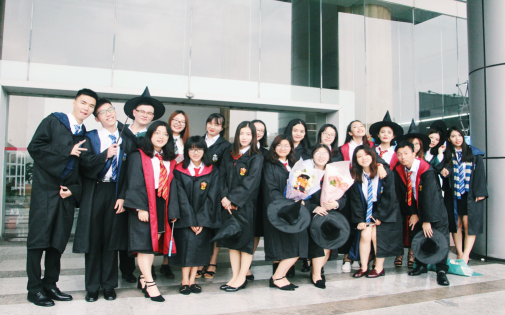 如此精彩且有创意的毕业照拍摄,离不开同学之间的默契。曾经担任过班长的刘映婷说:“我们班同学感情比较好,平时在微信群里也经常互开玩笑。”在大学最后一个六一节到来之时,刘映婷发了一篇标题为“新一主题毕业照之霍格沃茨广外分校开学典礼”的推送,来纪念这次难忘的毕业合照。