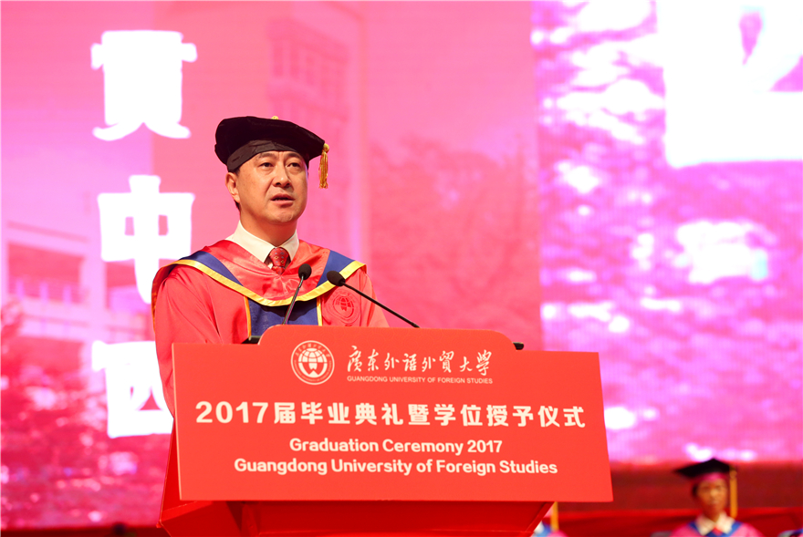 隋广军希望广外学子秉承“卓越、诚实、包容、自信”的价值观,始终保持定力,坚守价值。坚持从一点一滴的小事做起,用自己每天前进的一小步,去迎接未来改变人生的一大步。他希望大家保持阳光的心态,始终坚定对美好的期盼,对现实的善意,对价值的坚守,对这个国家的信心,对这片土地的热爱。“在一步一个脚印中紧紧把握未来,用青春和智慧,去奋力开创属于自己的精彩时代!”