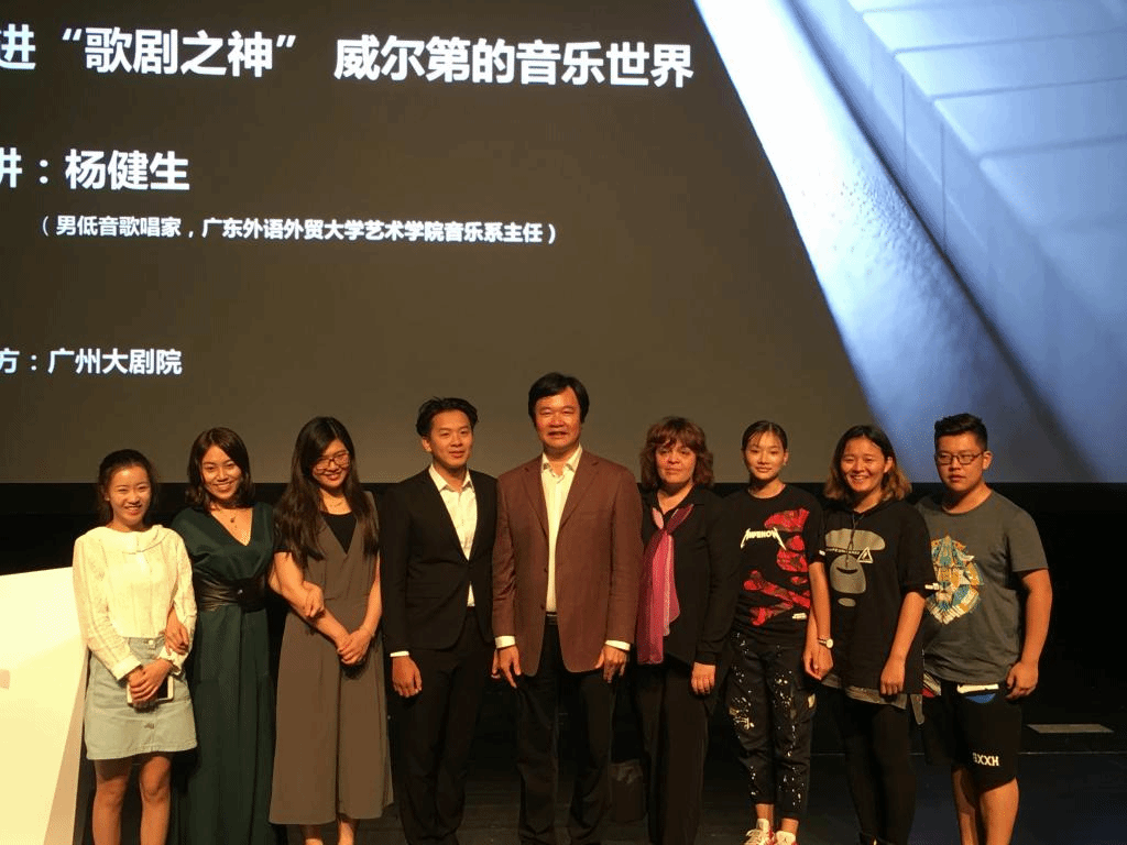 本网讯 6月16日晚,广州全城暴雨肆虐,却没有浇灭羊城音乐爱好者对歌剧艺术的热情,在广州大剧院实验剧场举行的《走进“歌剧之神”威尔第的音乐世界》讲座,全场座无虚席。我校艺术学院音乐系主任杨健生为广州观众解析威尔第的歌剧经典,阐明威尔第歌剧的魅力与戏剧张力。
